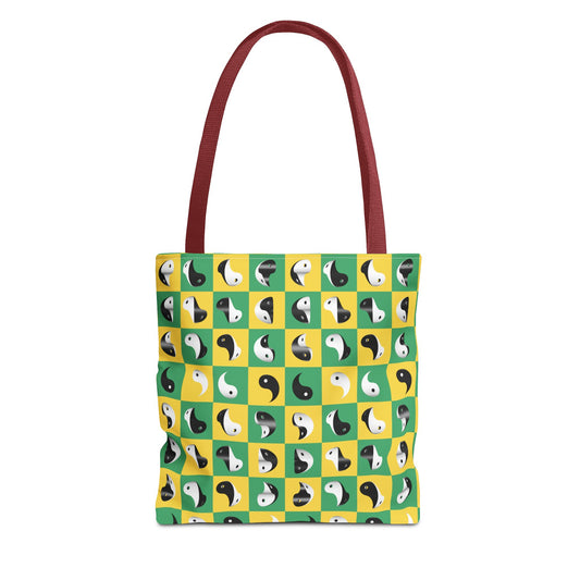 Transforming Yinyang on Green and Yellow Checkerboard Pattern Tote
